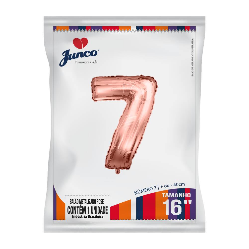 Balão Metalizado Rose Gold Nº 7 Junco - 16" 40cm
