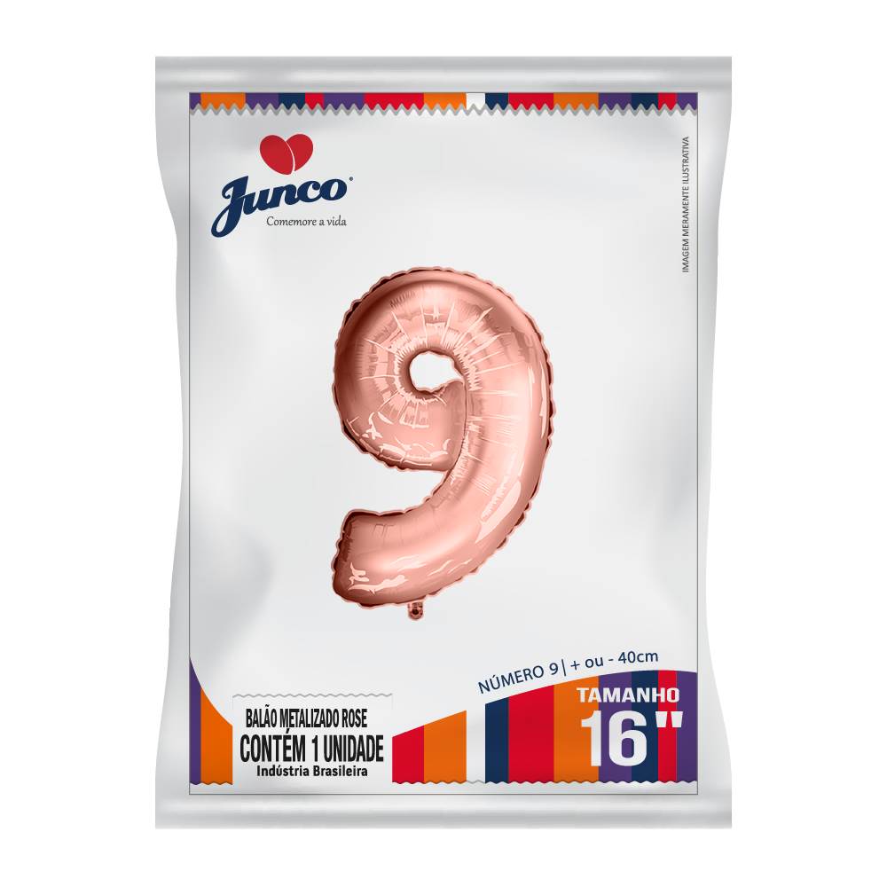Balão Metalizado Rose Gold Nº 9 Junco - 16" 40cm