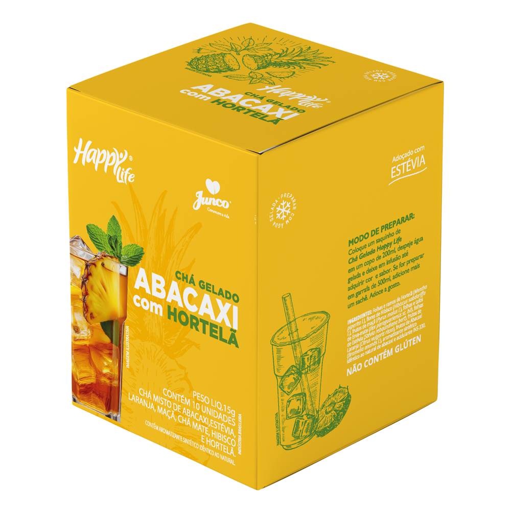 Chá Gelado Sabor Abacaxi Com Hortelã Happy Life Sachê
