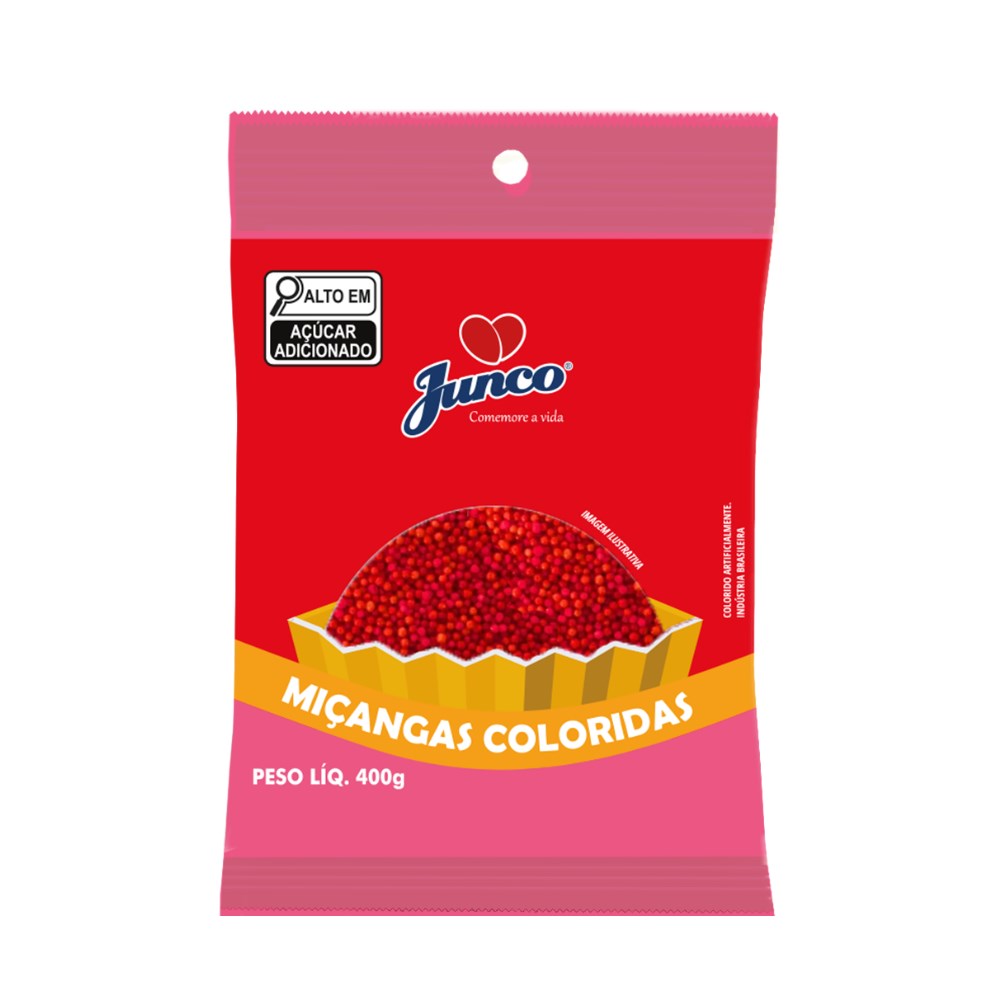 Confeito Miçanga Colorida Vermelha Junco – 10 Pacotes de 400g