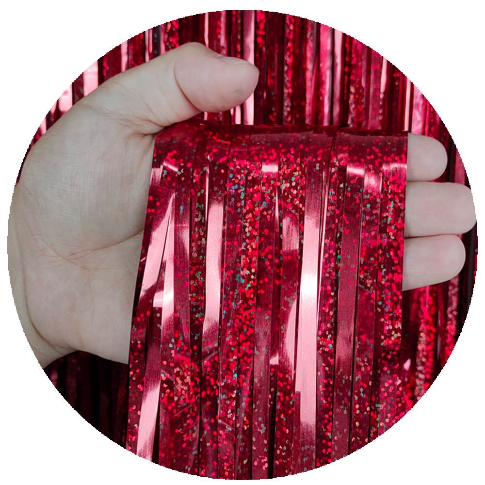 Cortina de Fita Metalizada Holográfica Vermelho para Festa Junco 1x2m 1 unidade