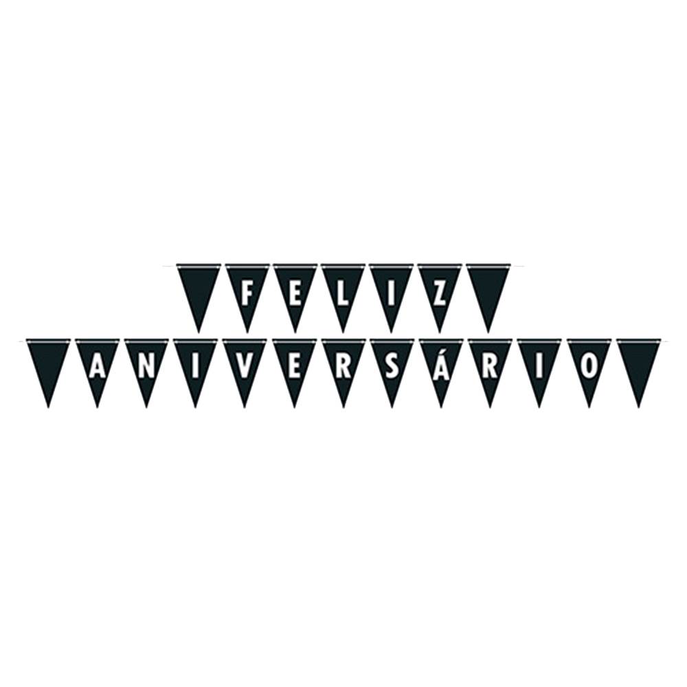 Faixa Feliz Aniversário Preto Junco 175x13cm 1 unidade