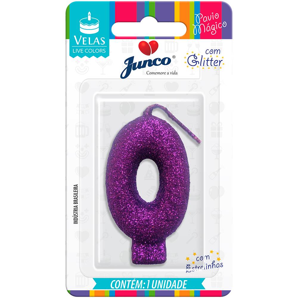 Vela Aniversário Live Colors com Glitter Lilás Nº 0 Junco