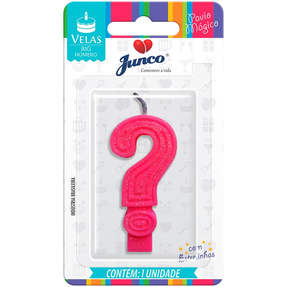 Vela Aniversário Big Interrogação Rosa Junco