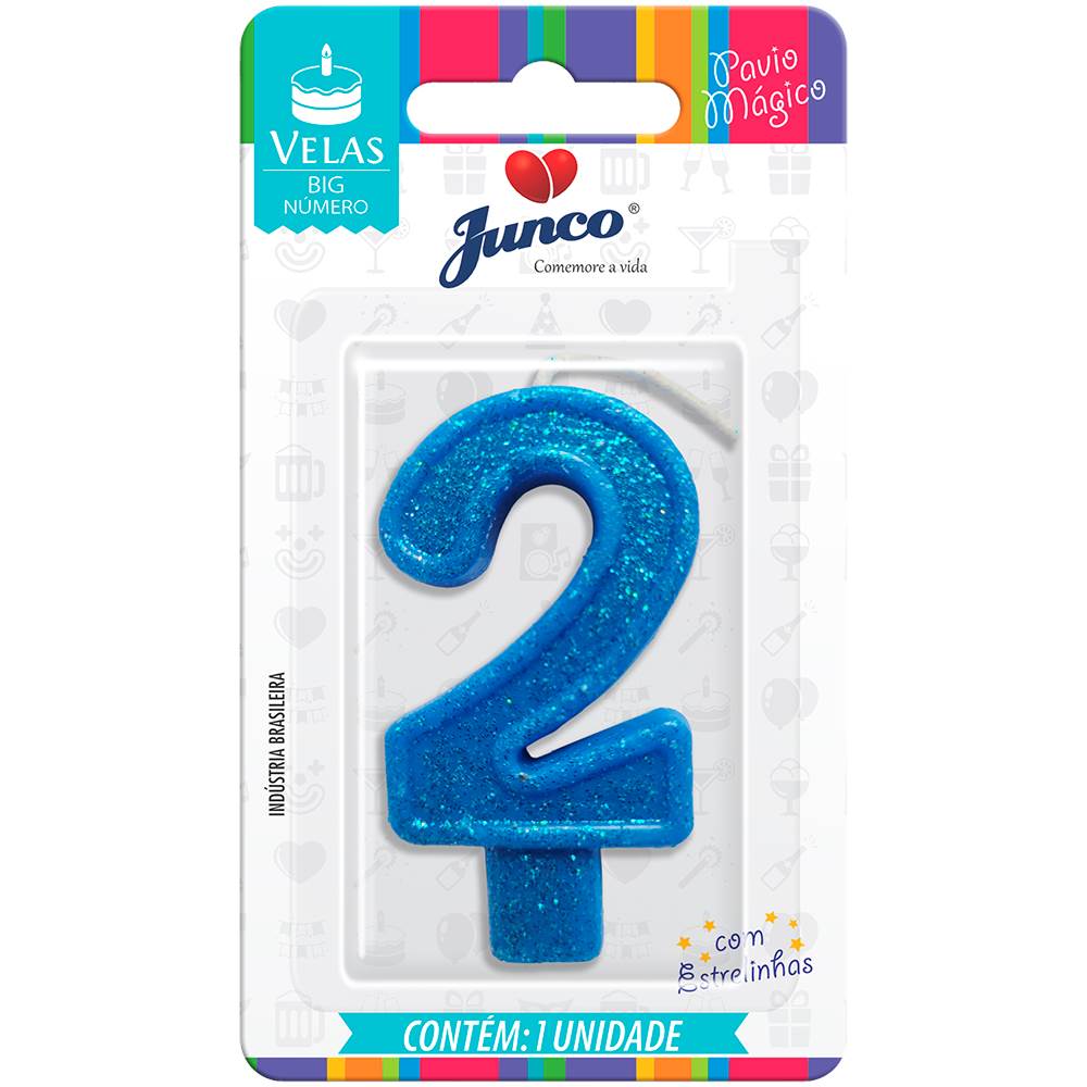 Vela Aniversário Big Número Azul Nº 2 Junco