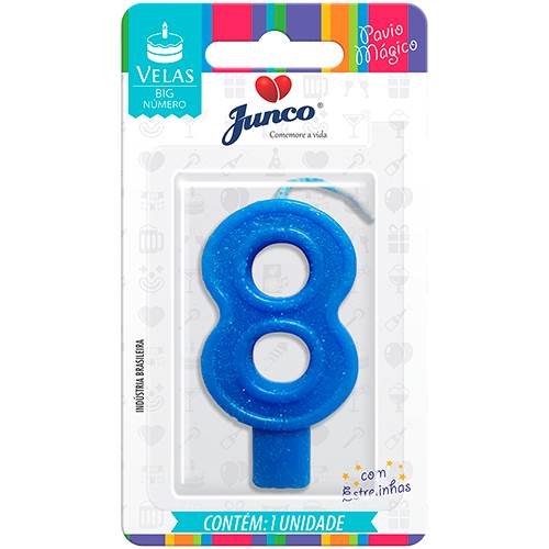 Vela Aniversário Big Número Azul Nº 8 Junco