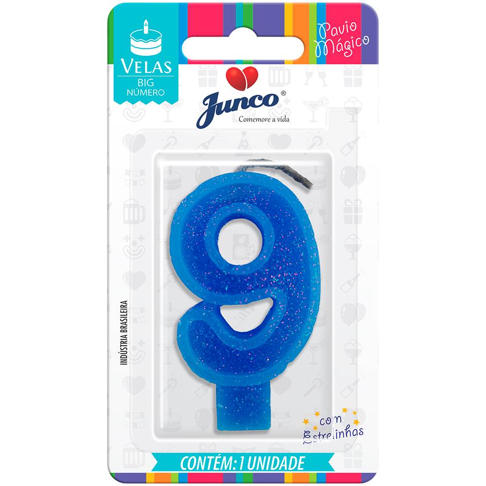Vela Aniversário Big Número Azul Nº 9 Junco