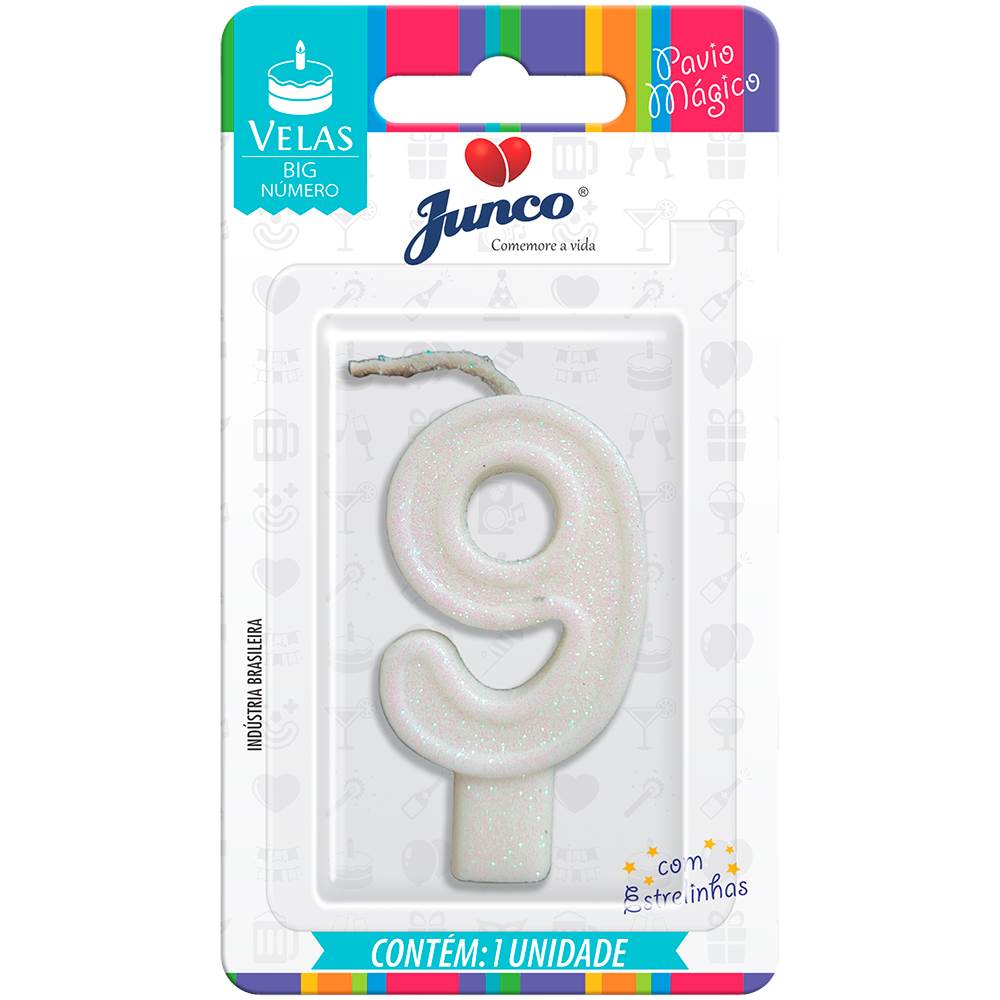 Vela Aniversário Big Número Branca Nº 9 Junco