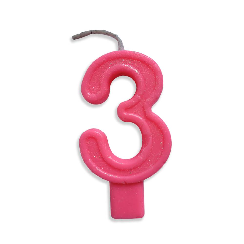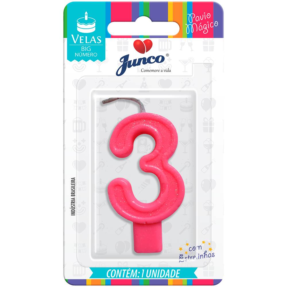 Vela Aniversário Big Número Rosa Nº 3 Junco