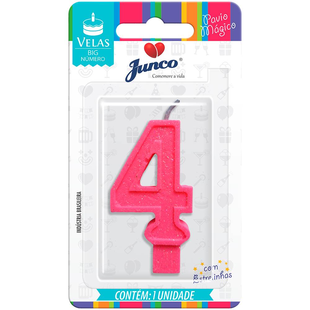 Vela Aniversário Big Número Rosa Nº 4 Junco