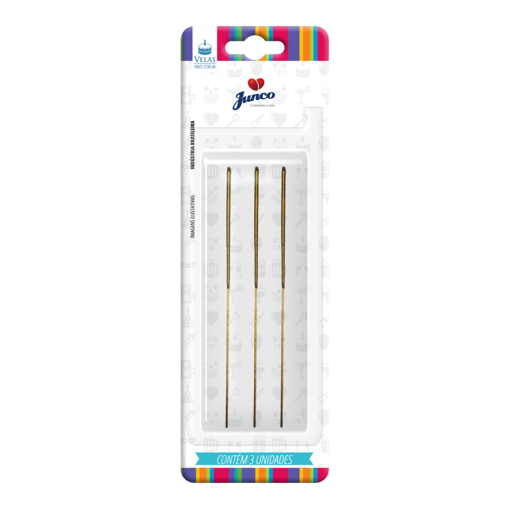 Vela Aniversário Estrelar Dourada Junco – 15 Pacotes com 3 Unidades Cada