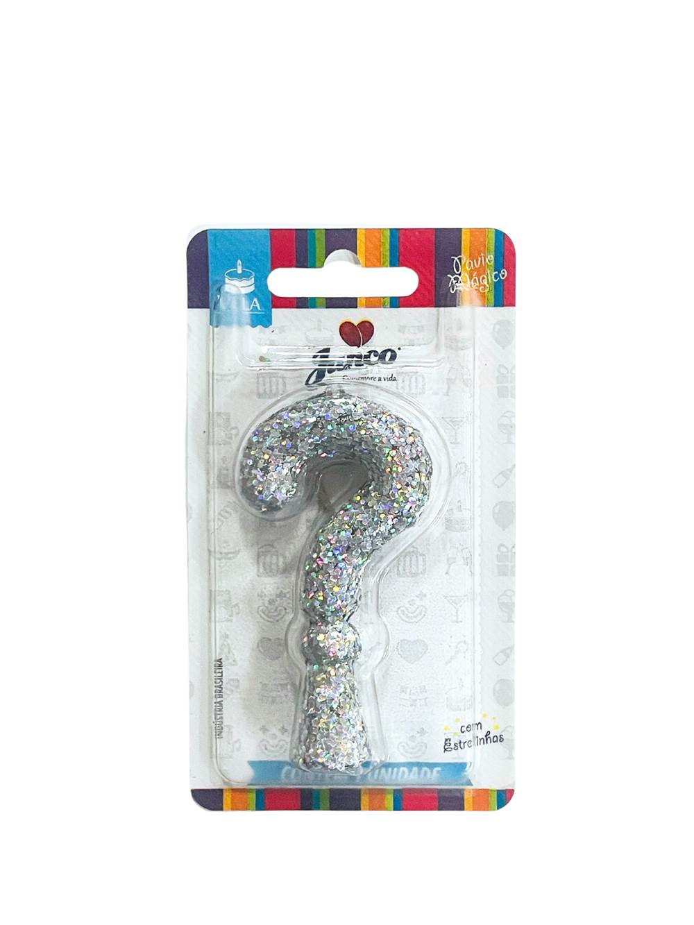 Vela Aniversário Holográfica com Gliter Prata Interrogação Junco