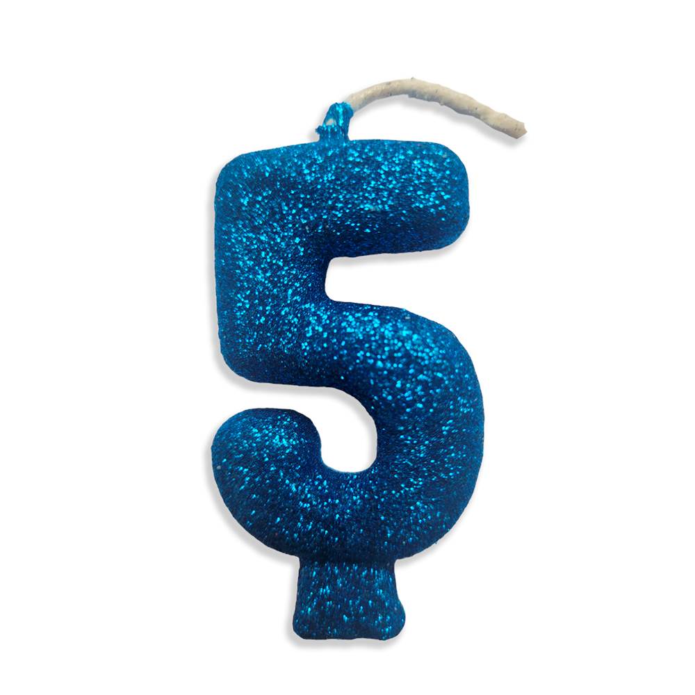 Vela Aniversário Live Colors com Gliter Azul Nº 5 Junco