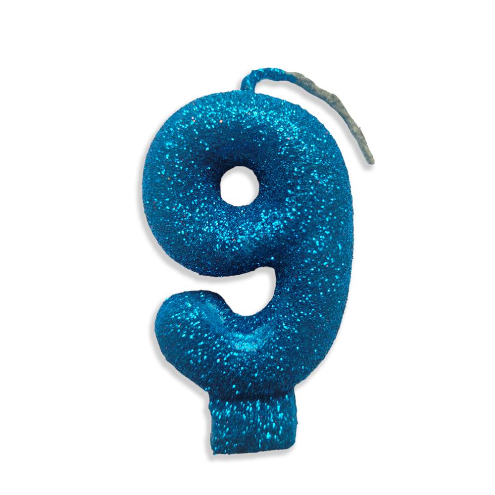 Vela Aniversário Live Colors com Gliter Azul Nº 9 Junco