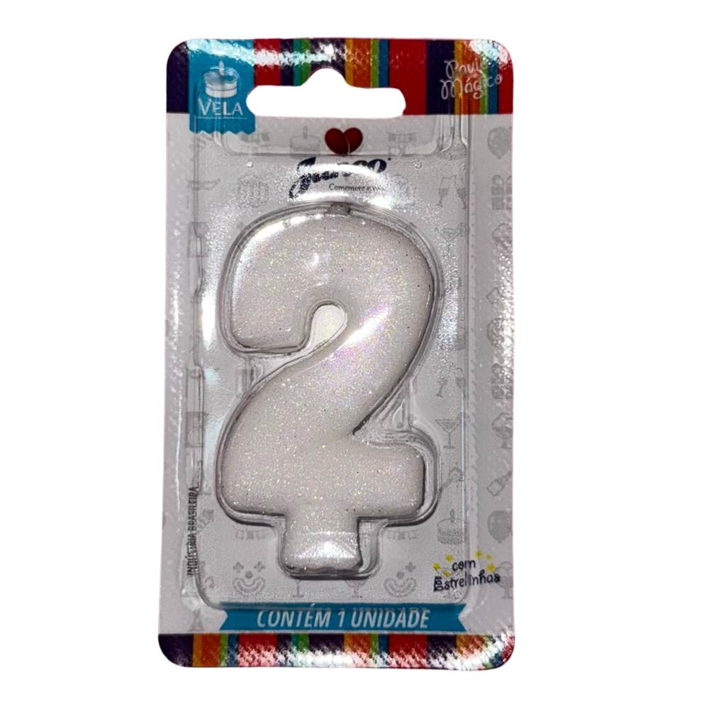 Vela Aniversário Live Colors com Gliter Branca Nº 2 Junco