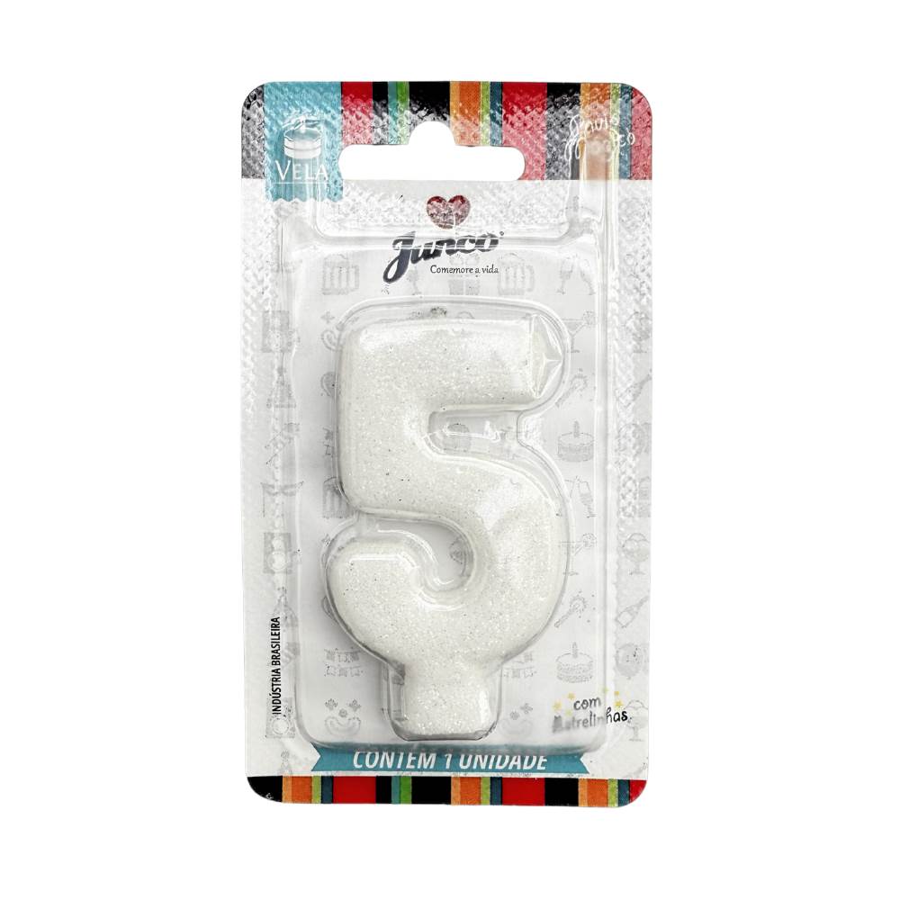 Vela Aniversário Live Colors com Gliter Branca Nº 5 Junco