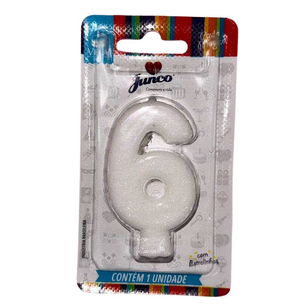 Vela Aniversário Live Colors com Gliter Branca Nº 6 Junco