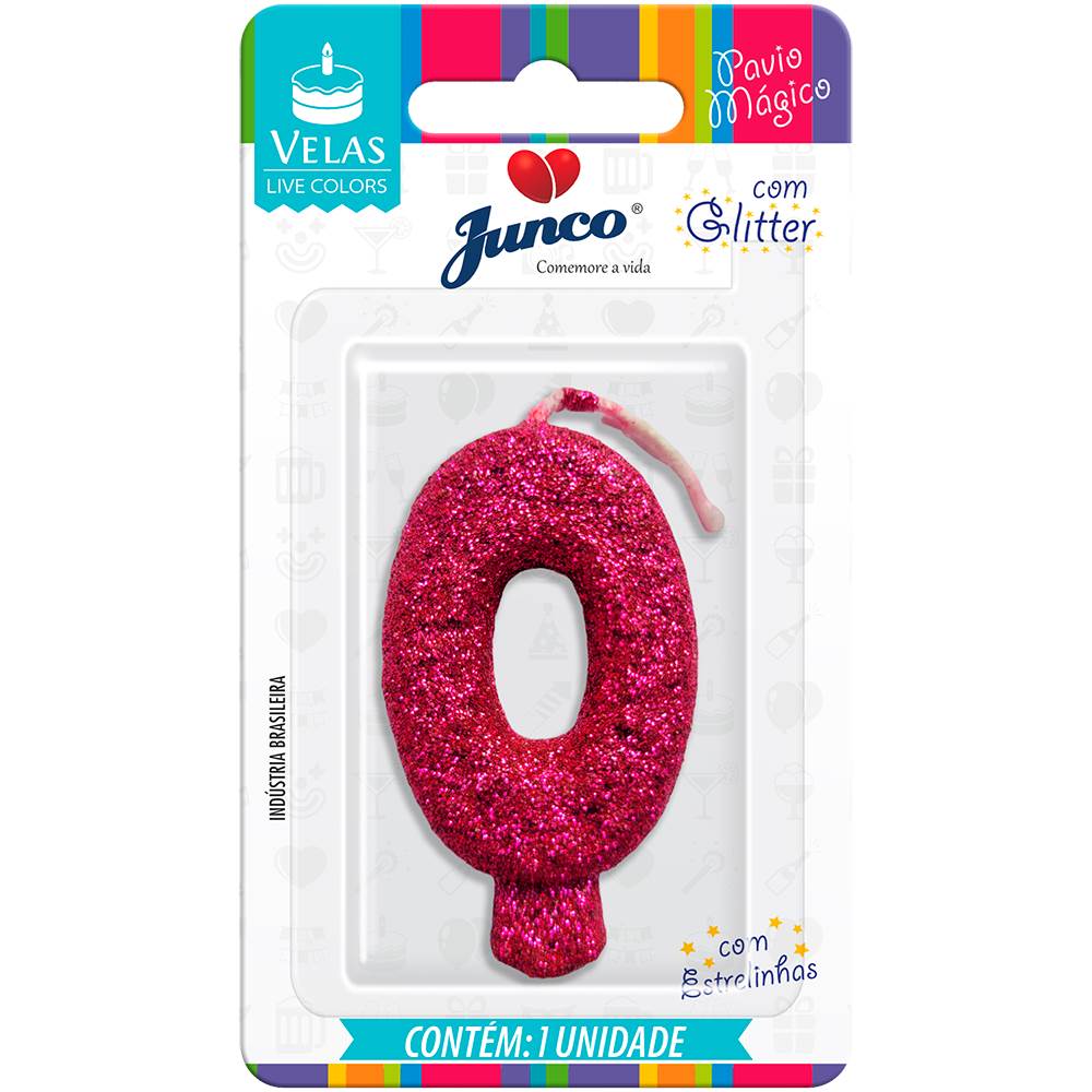 Vela Aniversário Live Colors com Gliter Pink Nº 0 Junco