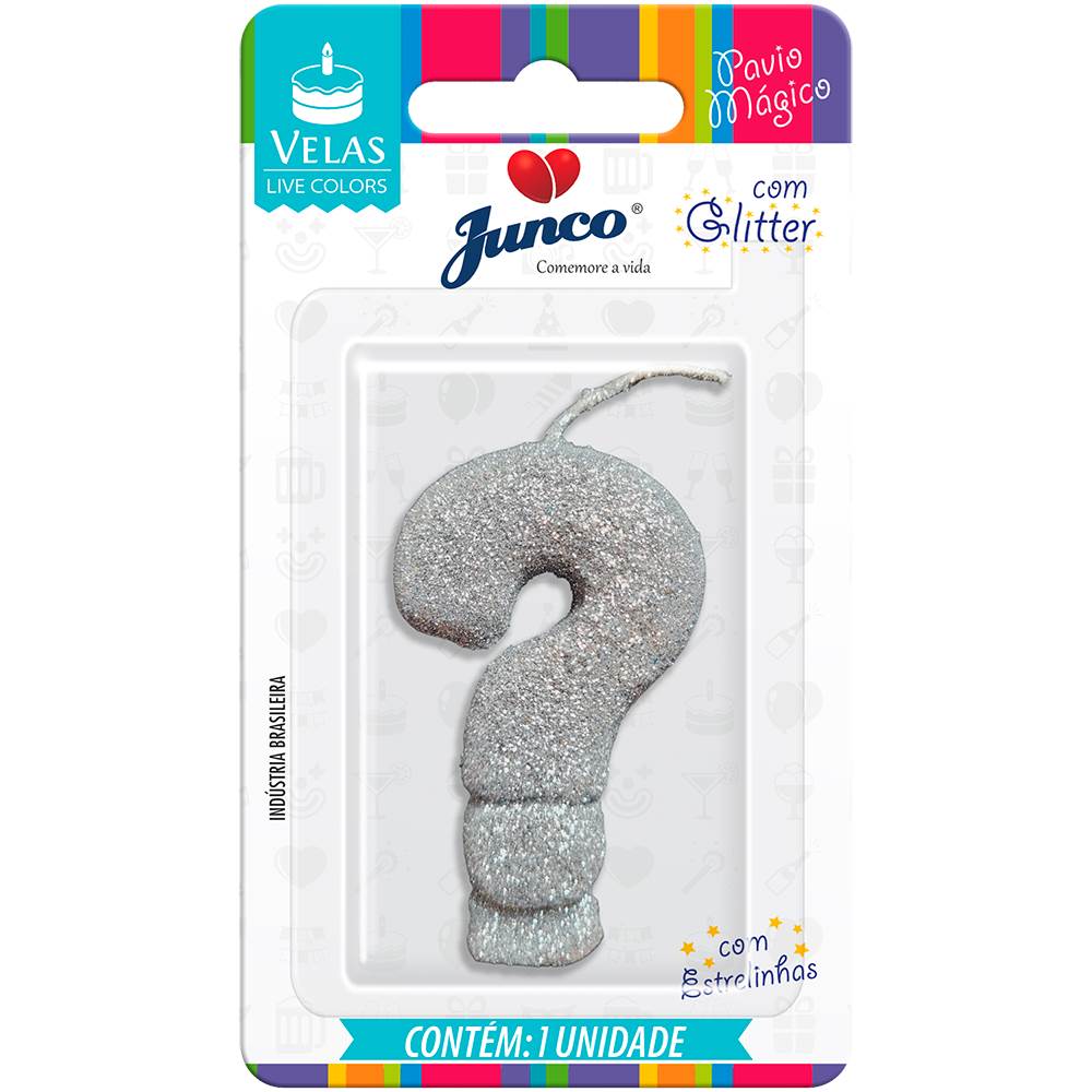 Vela Aniversário Live Colors com Gliter Prata Interrogação Junco