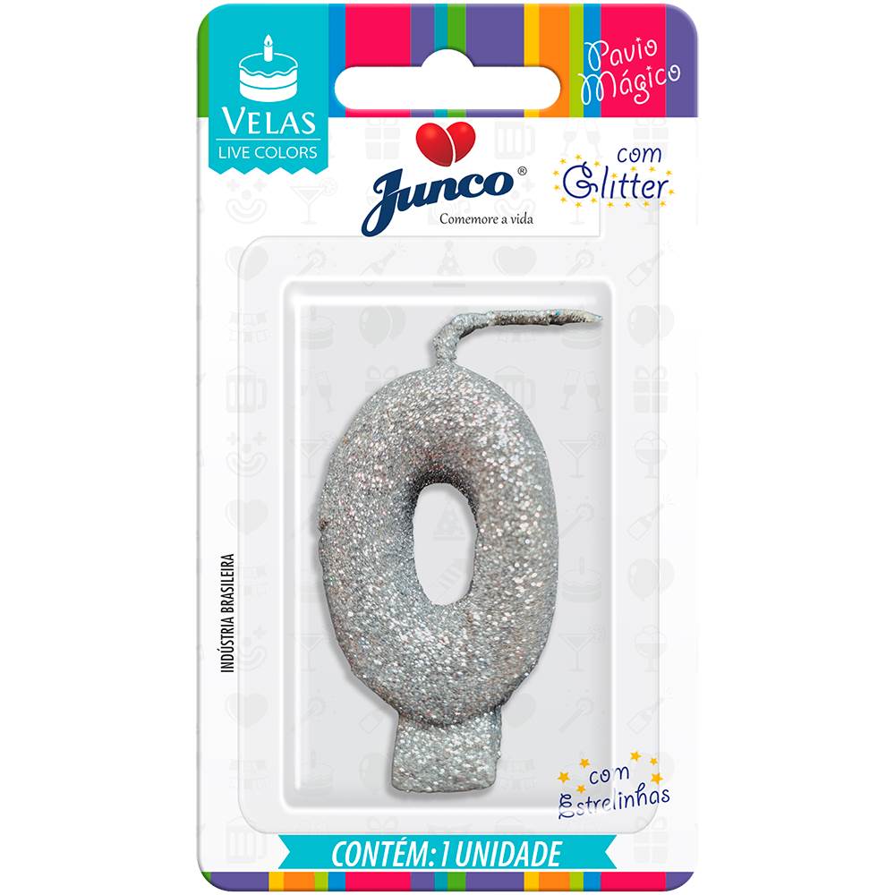 Vela Aniversário Live Colors com Gliter Prata Nº 0 Junco