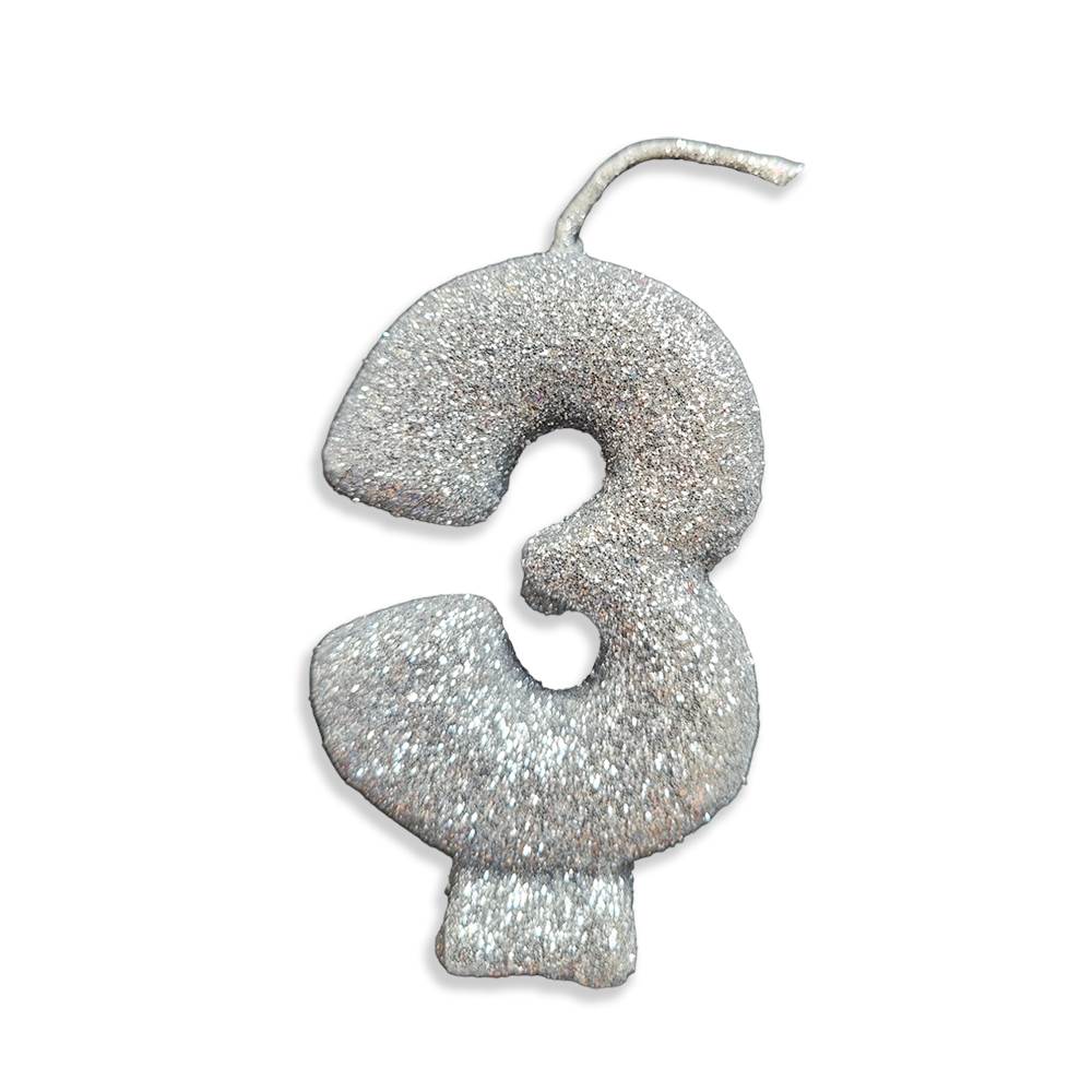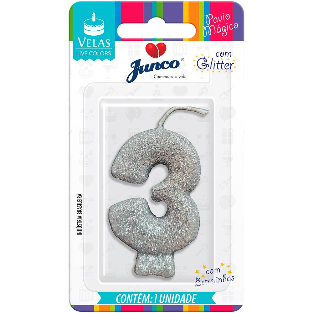 Vela Aniversário Live Colors com Gliter Prata Nº 3 Junco