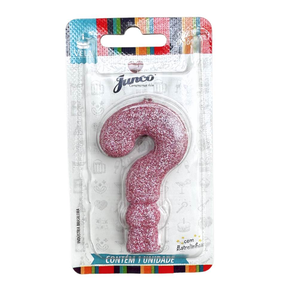 Vela Aniversário Live Colors Com Gliter Rosa Bebê Interrogação Junco