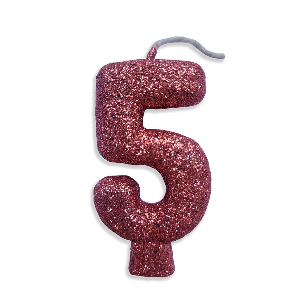 Vela Aniversário Live Colors Com Gliter Rose Gold Nº 5 Junco