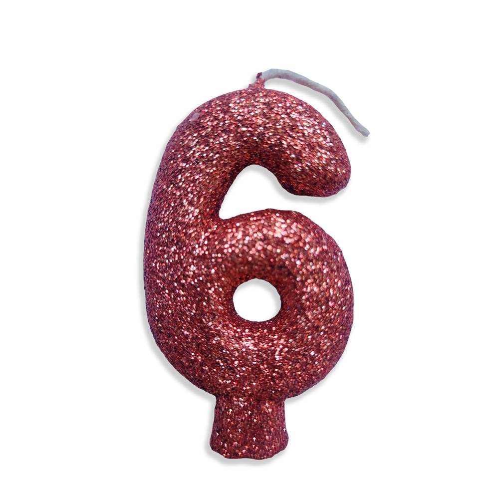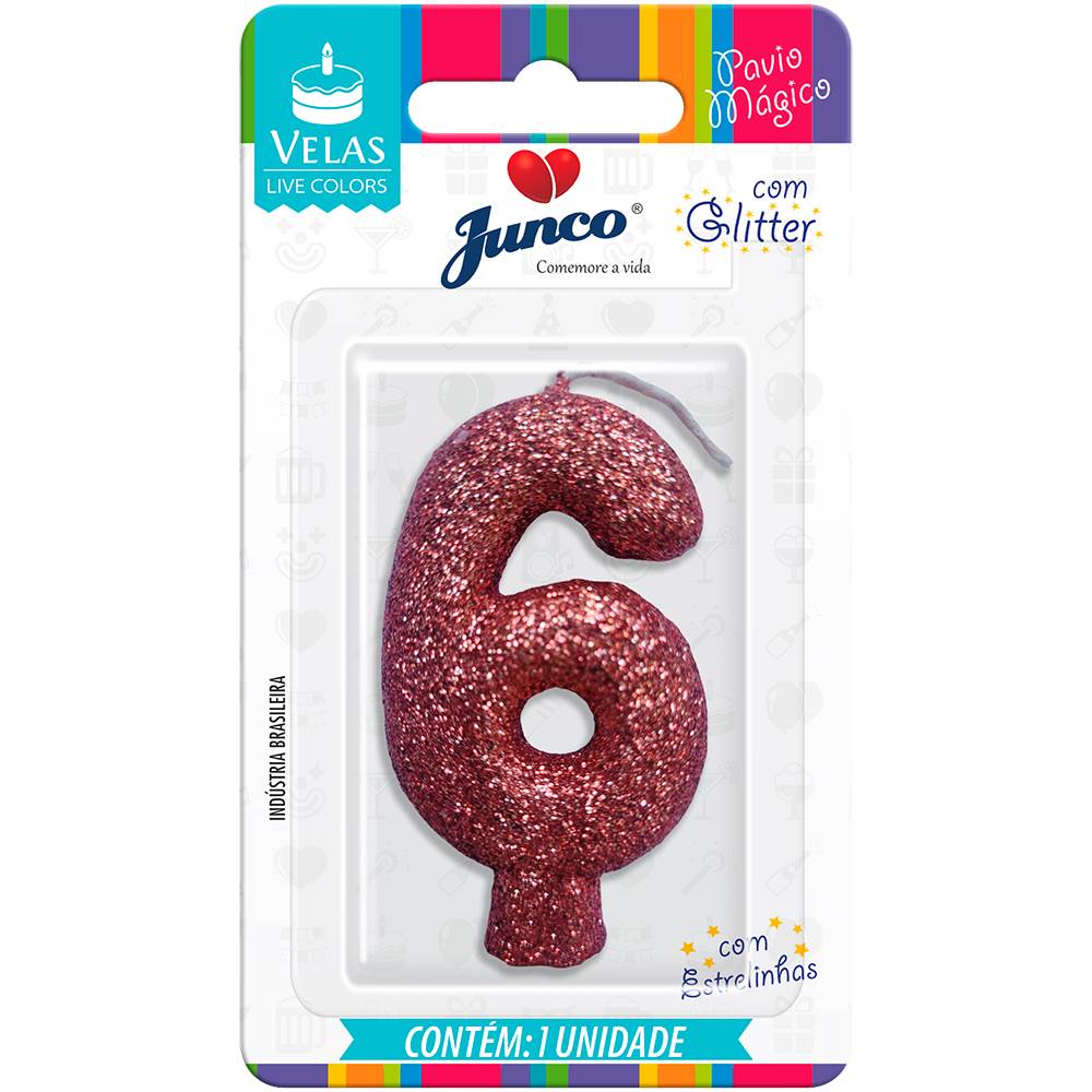 Vela Aniversário Live Colors Com Gliter Rose Gold Nº 6 Junco