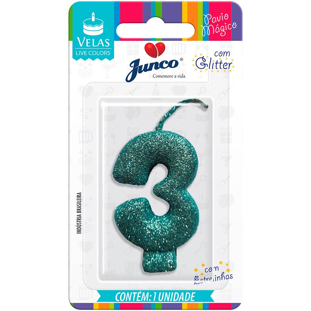 Vela Aniversário Live Colors Com Gliter Tiffany Nº 3 Junco
