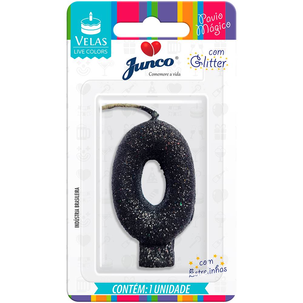 Vela Aniversário Live Colors com Glitter Preta Nº 0 Junco