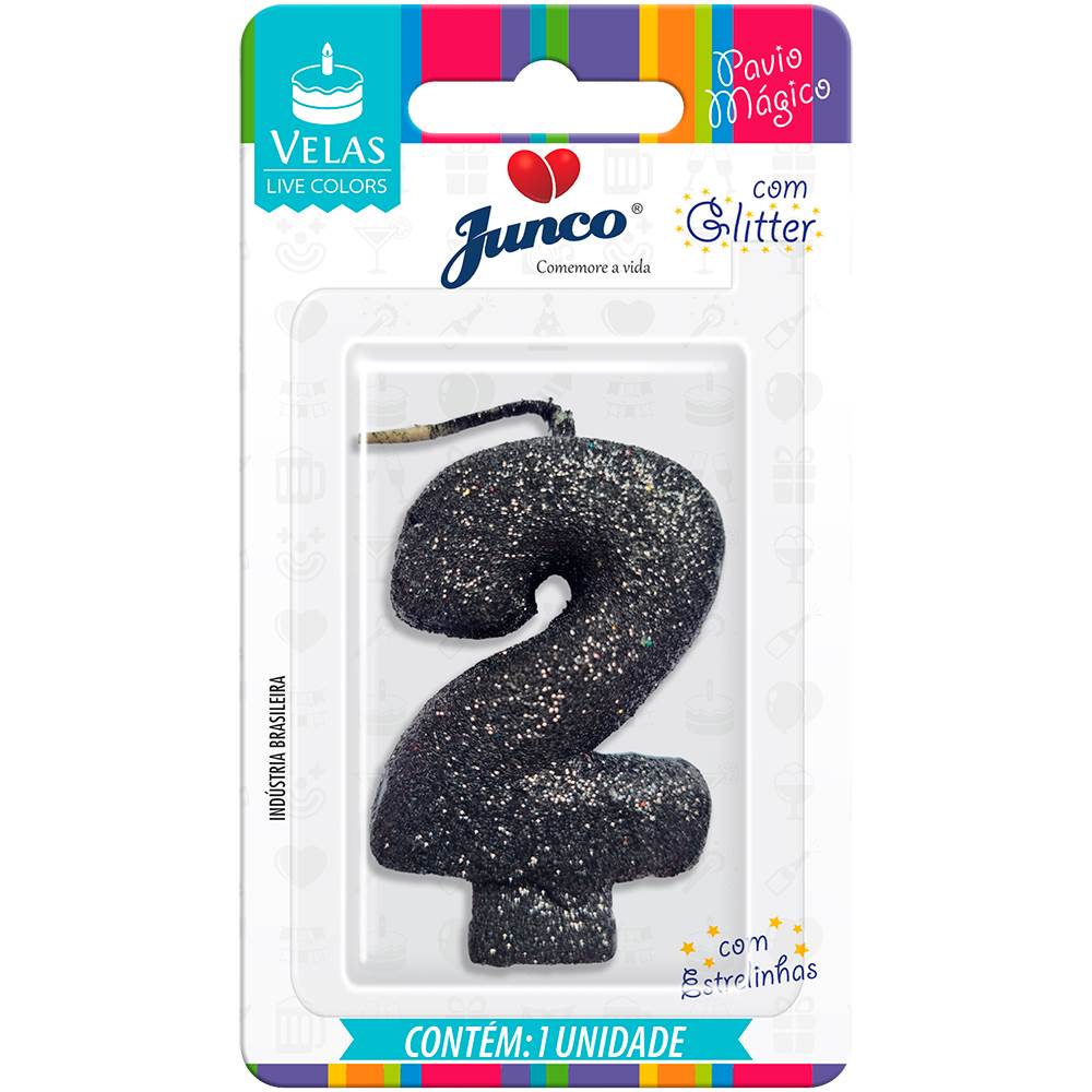 Vela Aniversário Live Colors com Glitter Preta Nº 2 Junco