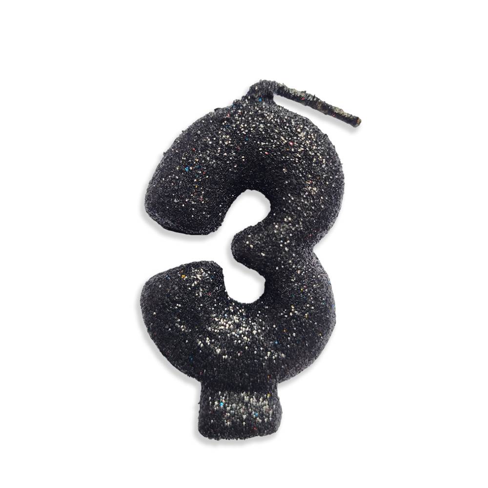 Vela Aniversário Live Colors com Glitter Preta Nº 3 Junco