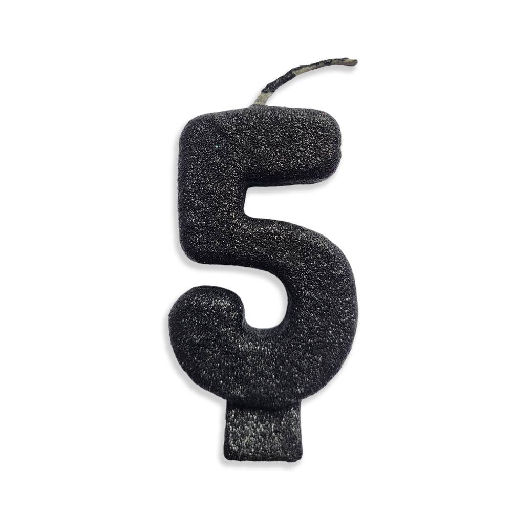 Vela Aniversário Live Colors com Glitter Preta Nº 5 Junco