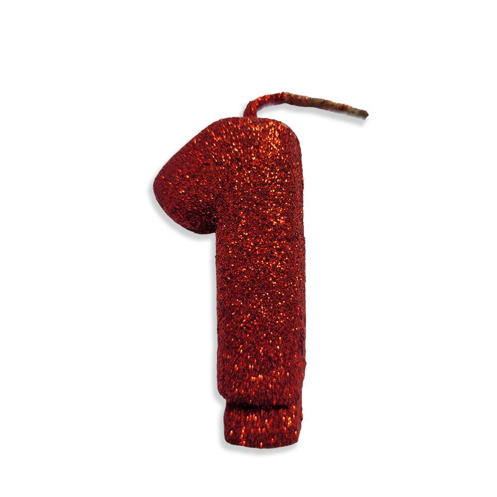 Vela Aniversário Live Colors com Glitter Vermelha Nº 1 Junco