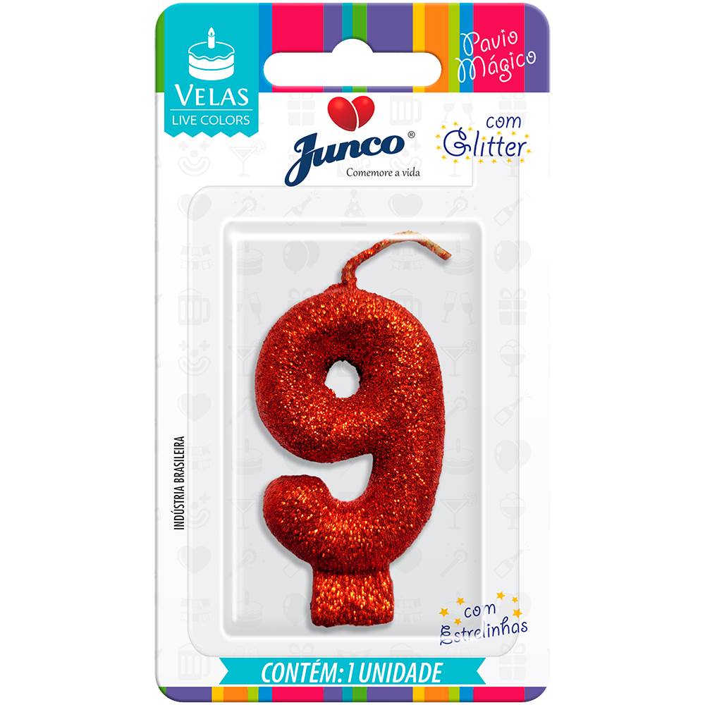 Vela Aniversário Live Colors com Glitter Vermelha Nº 9 Junco