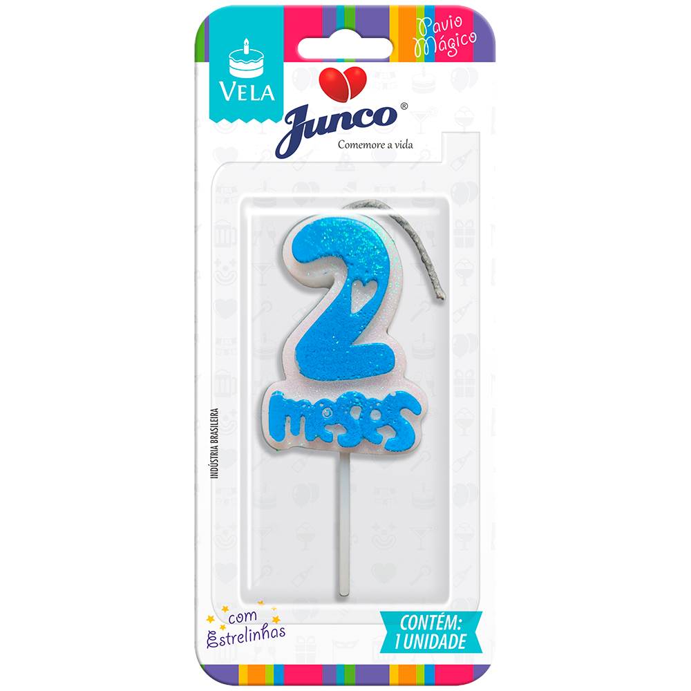 Vela Aniversário Mesversário Azul 2º mês Junco