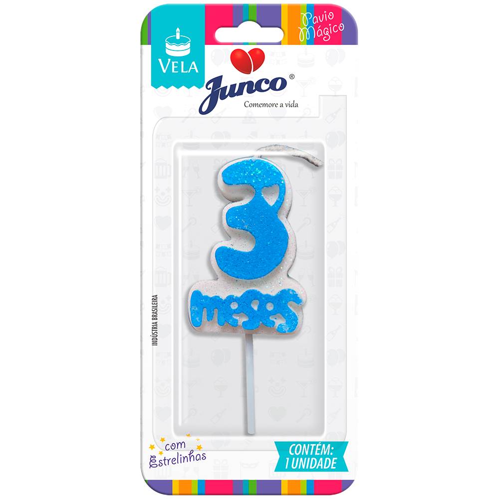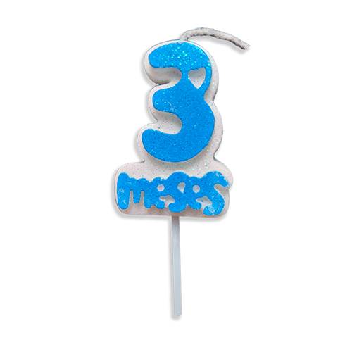 Vela Aniversário Mesversário Azul 3º mês Junco