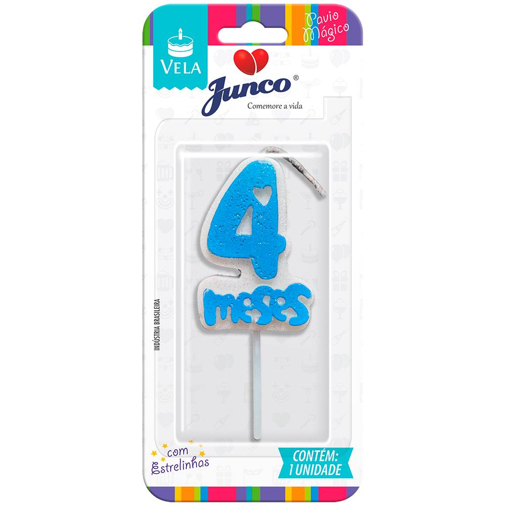Vela Aniversário Mesversário Azul 4º mês Junco