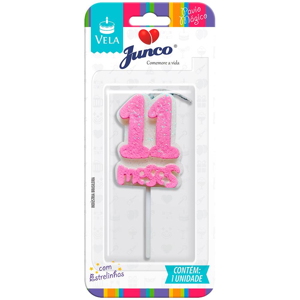 Vela Aniversário Mesversário Rosa 11º mês Junco