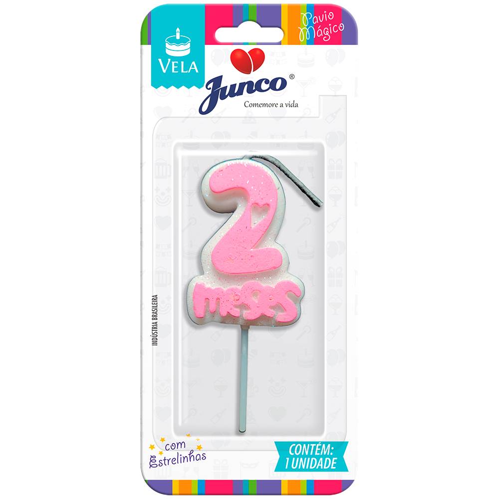 Vela Aniversário Mesversário Rosa 2º mês Junco