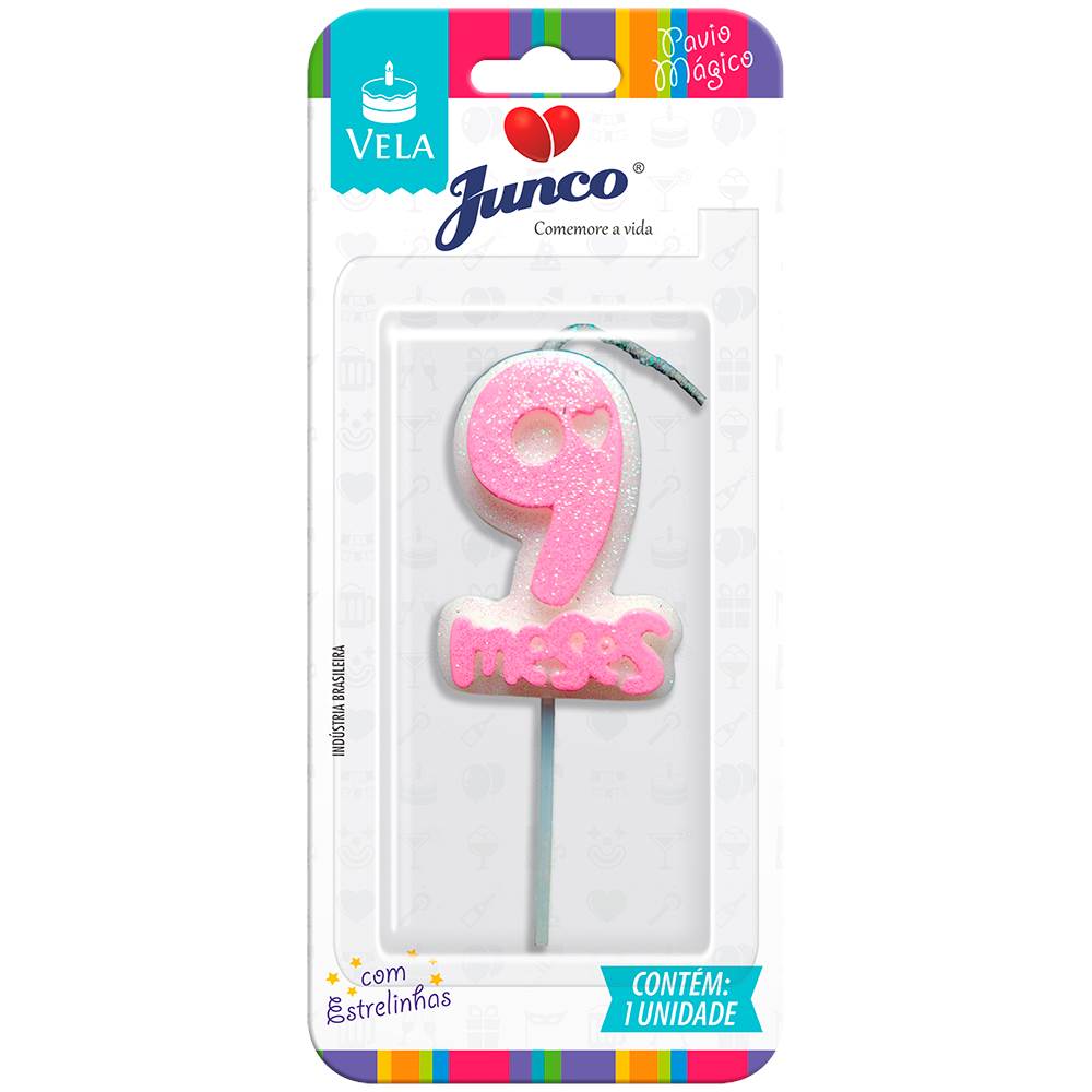 Vela Aniversário Mesversário Rosa 9º mês Junco