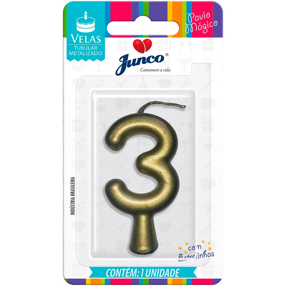 Vela Aniversário Metalizada Ouro Nº 3 Junco