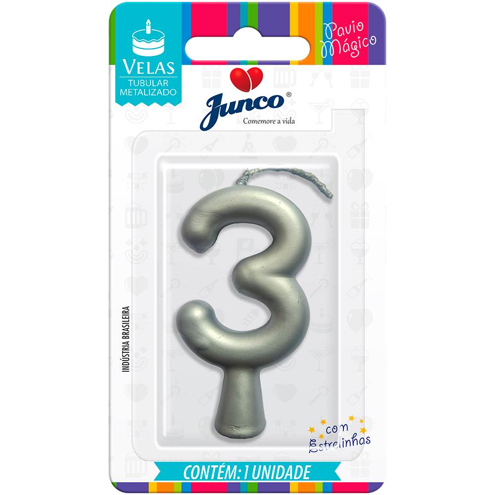 Vela Aniversário Metalizada Prata Nº 3 Junco