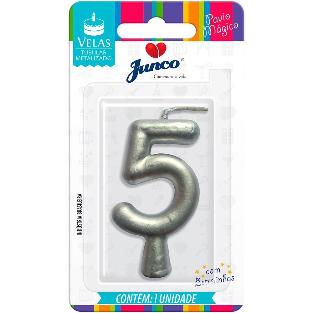Vela Aniversário Metalizada Prata Nº 5 Junco