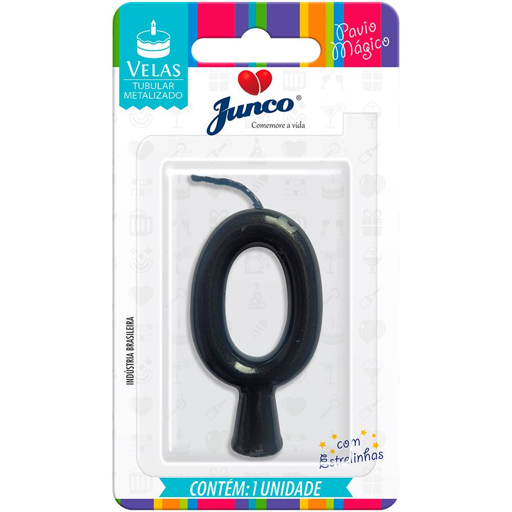 Vela Aniversário Metalizada Preta Nº 0 Junco