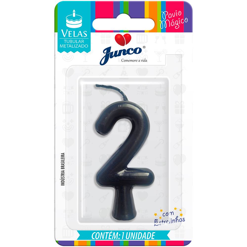 Vela Aniversário Metalizada Preta Nº 2 Junco