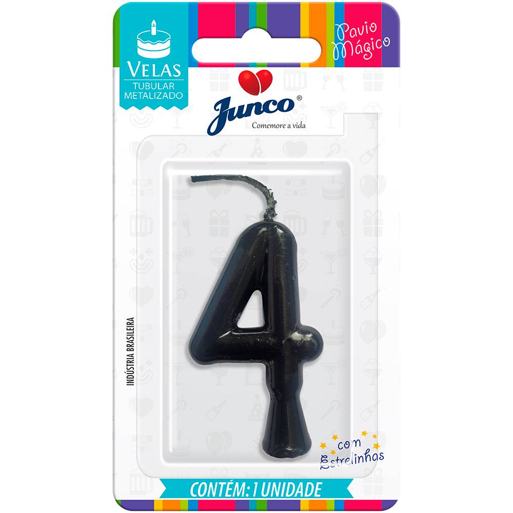 Vela Aniversário Metalizada Preta Nº 4 Junco