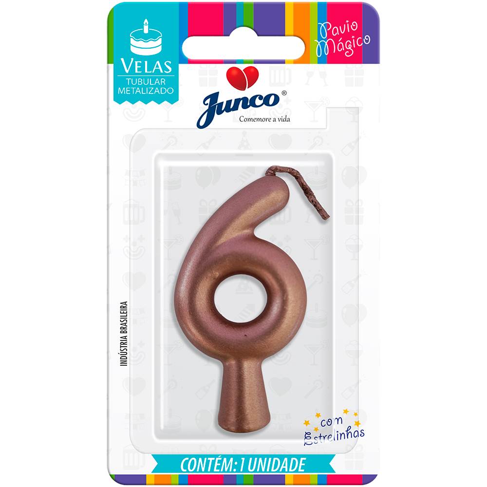 Vela Aniversário Metalizada Rose Gold Nº 6 Junco