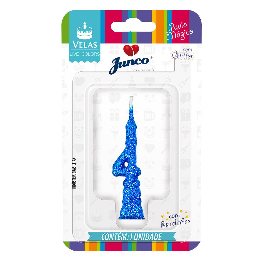 Vela Aniversário Mini Glitter Azul Nº 4 Junco