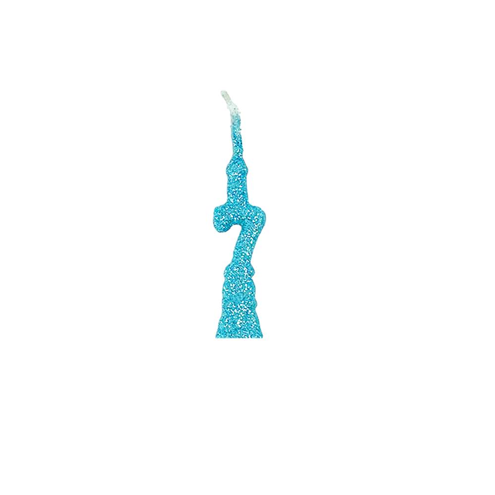 Vela Aniversário Mini Glitter Azul Tiffany Nº 7 Junco